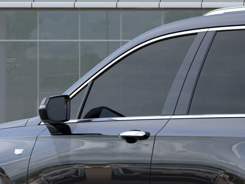 - Opens or closes when the system senses the key fob and the driver extends their foot under the left-hand side of the rear bumper over an image of the Cadillac Crest projected under the vehicle